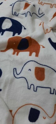 - Features adorable elephants in indigo blue, caramel, and creamy white