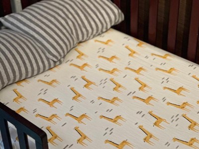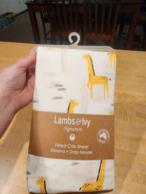 Lambs & Ivy Signature Giraffe Organic Cotton Fitted Crib Sheet - White/Yellow