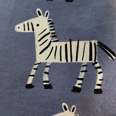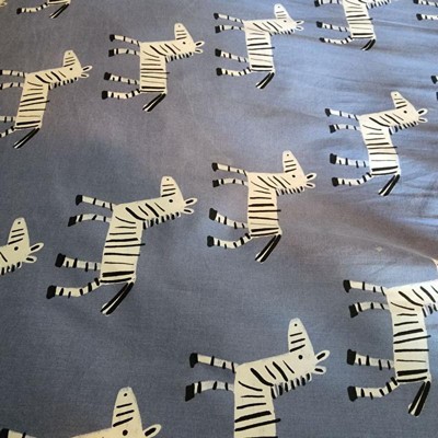 Charming, stylized zebras decorate this 100% certified organic cotton fitted crib sheet. Its fully elastic perimeter provides a safe and secure fit on a standard size crib mattress measuring 52” x 28”. The zebras are white with black body stripes, each is 3.75” in height and 4” in width. They are on an azure blue color and will add a little whimsy to your child’s sleep space.