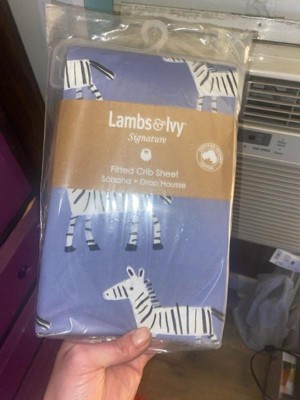 Lambs & Ivy Signature Zebra Blue Organic Cotton Breathable Fitted Crib Sheet