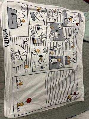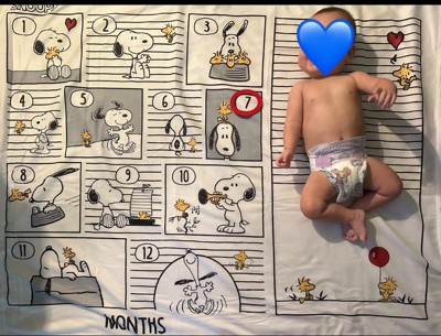 [This review was collected as part of a promotion.] I absolutely love this! My son loves it too! It’s so soft that he actually likes to lay there and take his picture! I love that it’s black and white with a few bits of color. We love snoopy!