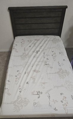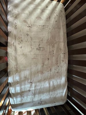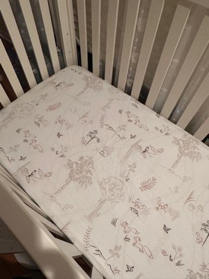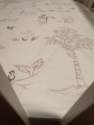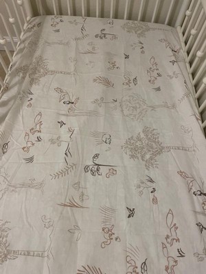 [This review was collected as part of a promotion.] Love this neutral woodland crib sheet. The size is perfect and not too hard to get onto the mattress. Material is 100% cotton which I appreciate. The color goes well with my off-white crib!