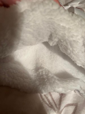 [This review was collected as part of a promotion.] This blanket is so soft and cuddly! It’s the perfect size for a baby or toddler, and I know my toddler will be fighting to have this instead of baby. It’s a soft brushed fleece on one side with a more Sherpa type fuzzy on the other. So far it has washed well, and hasn’t pilled on the blanket.