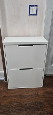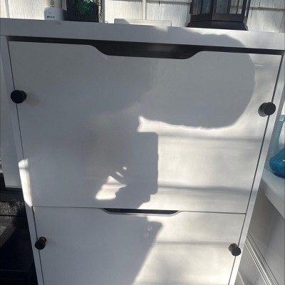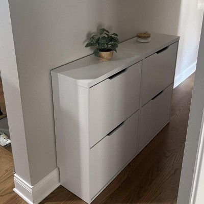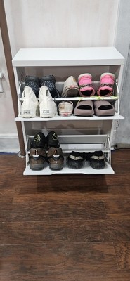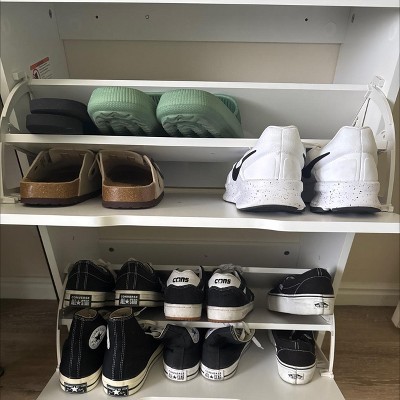 Laminate Pivot Open Shoe Cabinet White - Brightroom™: Shoe Organizer, Holds 12 Pairs, Wood Laminate, Freestanding