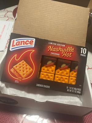 - Ten (10) snack packs of Lance® Nashville Hot Cheddar Sandwich Crackers