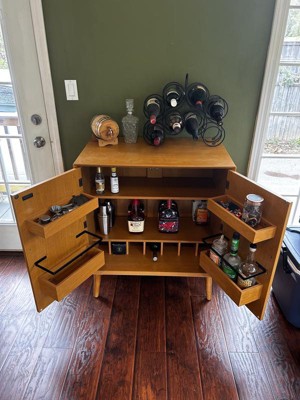 - Two shallow shelves attached to the cabinet doors for bar tools