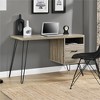 If you're looking for a space-saving modern computer desk, then check out the Ameriwood Home Landon Computer Desk. This Desk is designed with a smaller footprint, making it perfect for apartments, bedrooms and dorm rooms but still provides plenty of space for your necessities. The modern style mixed with the unique hairpin legs makes this Desk one to be desired. Use the large top surface for your laptop and a lamp and the open cubby to easily store your notebooks and binders. The bottom drawer holds all your letter sized files or office supplies to keep your papers organized. The distressed brown with gray undertone finish combined with dark gray accented legs adds to the beauty of this one-of-a-kind item. This desk is constructed of laminated particleboard and metal legs for a sturdy build. Assembly is required. After assembled, this desk measures to be 28.1"H x 45"W x 19.5"D.