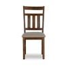 Constructed with both style and substance in mind, these chairs feature a thick and sturdy design, offering reliability and durability for everyday use. The brown finish contributes to an updated farmhouse vibe, creating a warm and inviting atmosphere. Whether you're looking to enhance your dining room, kitchen, or any other living space, these chairs, priced separately and conveniently packaged in sets of two, provide a versatile and cohesive solution. Some assembly is required, adding a personal touch to your home while ensuring a comfortable and stylish seating arrangement for you and your guests.