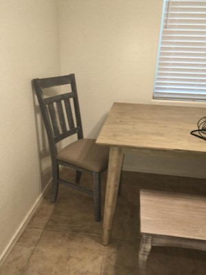 Bought the table and the chairs. Read previous reviews but since they were old, I decided to give it a shot. Glad I did. They are very comfortable and sturdy. The finish is beautiful (I have the grey). Would recommend this set.