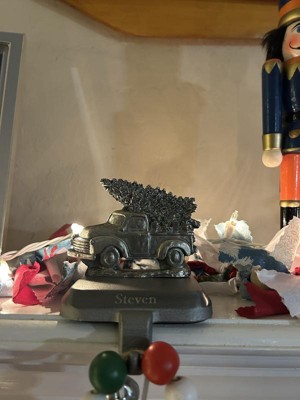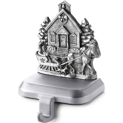 A local Delavan, Wisconsin company uses proven old world techniques to create these Stocking Holders. These are cast from intricately detailed, handcrafted molds and given a pewter finish. They're strong enough to hold up to 5 lbs. and have slip-resistant foam pads on the bottoms to protect your wooden mantel or furniture. Approximately 3 3/4"W x 5"H.