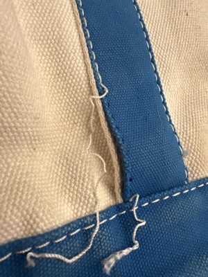 After using the tote for less than a year, the seam began to unravel where the strap is seen to the bag leaving the strap vulnerable to detaching as the thread continues to unravel. I’m very disappointed because I was hoping this could be our family tote bag for many years to come.
