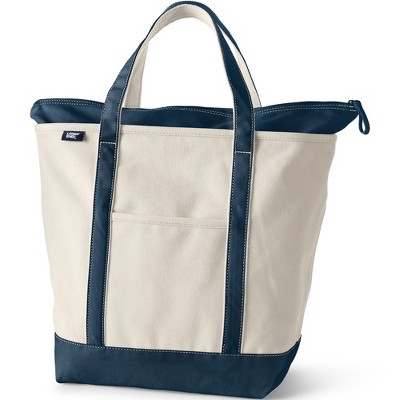 Lands' End Zip Top Long Handle Canvas Tote Bag