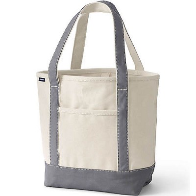 Lands' End Zip Top Long Handle Canvas Tote Bag