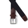 An attractive braided strap made from bungee cording gives you twice as much to love about this belt: it's a good-looking addition to casual outfits and it's high on comfort. The bungee cording gives the belt essential stretch that lets you move more freely than rigid dress belts. And the smooth grain leather trim is a handsome accent.