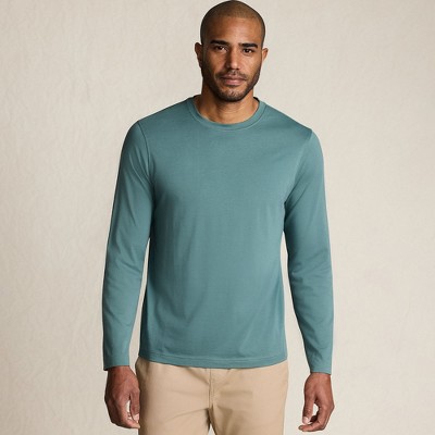 When it comes to classic and comfortable menswear you just can't beat the t-shirt. After all it's everything a good piece of clothing should be: Stylish cozy and incredibly versatile. So treat yourself right and stock up on a few of these durable Men's Short Sleeve Supima Tees from Lands' End. Made from breathable lightweight American-grown Supima® cotton fabric this short-sleeve shirt for men stands up to pilling wrinkles and shrinkage and even holds onto its vibrant color for longer. That you means you can wear and wash it countless times without stress. Thanks to the timeless design this packable t-shirt for men goes well with practically everything in your closet. On the weekend keep things low key and pair it with your favorite denim jeans bomber jacket and sneakers. It's also nice with sandals a hoodie and cargo shorts for after day at the beach or a pair of cozy flannel sweatpants and slippers when you're chilling out at home.