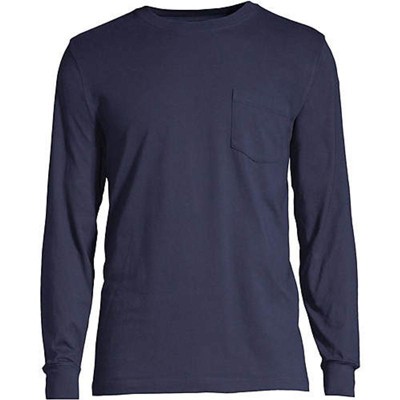 The Lands’ End Men’s Super-T Long Sleeve T-Shirt With Pocket just may be the strongest long sleeve tee you’ll ever own. Nearly invulnerable it’s made from 100% jersey knit cotton so it stretches with you when you move. And the medium weight heft makes it less likely to tear when you’re doing some serious hero work like wrestling with the dog playing ball with the kids camping in tough terrain forging new hiking paths or even just tackling that To-Do list at the office. Plus thanks to the breathable aspects of cotton you’ll have cooling comfort when you sweat. Ribbed cuffs keep long sleeves in place for additional warmth. Crewneck tee layers well under button-down shirts polos fleece flannels jackets blazers hoodies sweatshirts and vests. This is the ideal long sleeve undershirt for every man! With multiple solid colors to choose from the clothing combinations and layering potential is vast. Available in extended sizes too. Ordering a tall offers greater length if you need it. Consult sizing chart for your true to size fit.