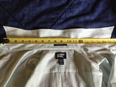 I have several of these traditional fit supima pinpoints from Lands' End from several years ago, size 15.5 36. They fit well enough, but thought for ordering more, maybe I'd like just a bit more room, so ordered 16 36 this time in this style and several others...(non-pinpoint) oxford, twill, broadcloth, "travel kit", and two flannel styles. Every shirt is a full inch larger neck than it should be. "Exact" size 16 36 shirts measure 17" neck. "L" & "L T" which the size chart say will be 16-16.5 neck measure between 17-17.5. I'm sorry but there is no excuse for every shirt's neck being a full inch larger than the stated exact size or the size chart specification. If you say it's 16, and the label on the shirt itself says 16 why is it actually 17? (I measured the ones I have that say 15.5 on the label, they measure 15.5, so Lands' End at least used to know 15.5 on the label is supposed to actually measure 15.5. Sheesh. Seems well made otherwise but how can you buy if you can't believe the size...sending the whole bunch back.