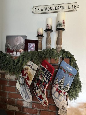 At Lands’ End we value time spent connecting with family and friends and we try to do our part to make those moments a little more special. And what better time of year to make special memories with the ones we love than during the holidays? From matching family pajamas to fun holiday sweaters and festive Christmas stockings there’s so many ways to make those memories a little sweeter. Our Needlepoint Christmas Stocking is a classic addition to any Christmas décor. Whether you like to decorate in silver and gold blue and white or red and green we offer Christmas stockings guaranteed to complement your most beloved decorations. Offered in a variety of festive holiday and winter scenes like Santa in his sleigh dogs in front of the fireplace a sweet gingerbread house snowmen with woodland creatures Santa on a bike fairies around a Christmas tree and so much more. Ideal for growing families one of our unique Needlepoint Christmas Stockings make an excellent gift for a new family member like a daughter or son in-law or visiting relatives on Christmas morning like Mom and Dad or grandma and grandpa. A fun festive stocking also makes a great baby’s first Christmas gift for a new parent and child. Made from quality materials and generously sized these stockings are designed with stocking stuffing treats and treasures in mind. Measurements are: 7 3/8”W x 20 ½”D x 20 ½” L; Stockings are measured diagonally from the top left (without loop) to the tip of the toe; Convenient top hanging loop fits easily on stocking hangers or hooks. Why wait until the first snowfall of winter to start decorating? Bring a little holiday cheer into your home in the fall right after Thanksgiving or even Halloween! With so many fun and festive scenes to choose from these indoor stockings can be displayed as decorations throughout your home over the fireplace in the living room bedroom or kitchen! You can even hang it in a window to complement your outdoor Christmas lights and