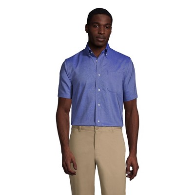 Lands' End Men's Short Sleeve No Iron Pinpoint Dress Shirt - Small - French Blue