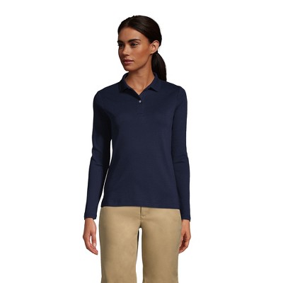 Built to perform. Our popular School Uniform Womens Long Sleeve Mesh Polo Shirt looks new longer. It stays true to size colors stay bright and stains wash out easier wear after wear wash after wash. Even better you get all this performance without giving up any softness or comfort. We still use breathable combed cotton fabric with a touch of spandex for shape. You also get a smooth covered neck seam reinforced shoulders and neat double-needle stitching. This is a lighter cotton shirt that will do wonders for all day activities in and out of school. 100% cotton the comfortable fabric makes this an excellent polo that will provide a distraction-free fit. Beyond the traditional two-button placket and quality collar the reinforced shoulder seams and smooth neck collar aid in making this a long-lasting shirt. Plus this polo resists shrinkage fading staining and pilling. Lands' End creates and manufactures durable reliable uniforms that make it an easy choice for parents first thing.