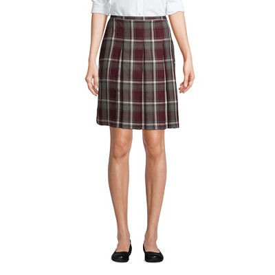 Lands' End Women's Plaid A-line Skirt Below the Knee - 0 - Burgundy/Gray Plaid