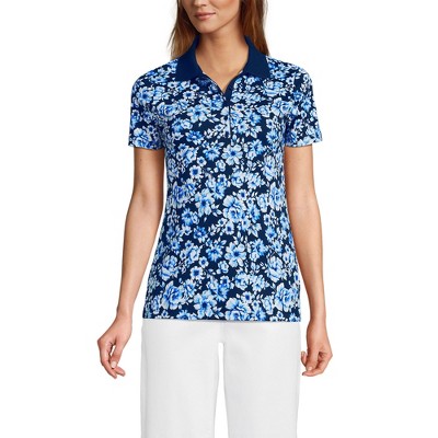 Lands' End Women's 3/4 Sleeve Supima Cotton Polo Shirt - X Small - Navy Mini Bloom Floral