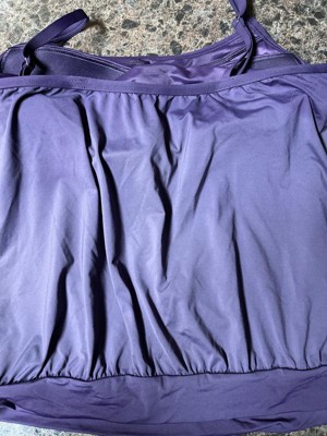 I bought two tops in this style as I'm adjusting to post-baby, mom-bod life and like the idea that the material would be a little more forgiving and flow-y. Out of the water, it's great, but once you get in the water, you balloon up and are constantly having bubbles burst out of your suit in a very...embarassing fashion! Then, while on vacation and without another option, I put my suit on to go to the hotel pool with my kiddos and one of the straps broke completely off the back hook! I'd only worn the suit a few times in the months of having it and never abused the material, so it was really shocking when it snapped. I was able to sew it back together for that trip, but I've since returned it and won't be replacing it with this style.