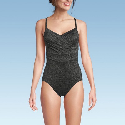 Lands' End Women's Side Tie Wrap One Piece Swimsuit - 18 - Deep Sea Navy