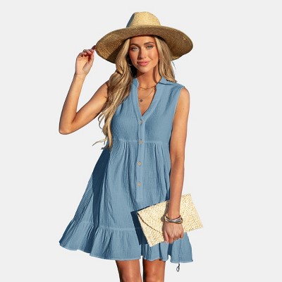 Lands' End Women's Oversized Cotton Gauze Metallic Tiered Mini Cover-up Dress - Small - Soft Sky Blue/Gold Metallic