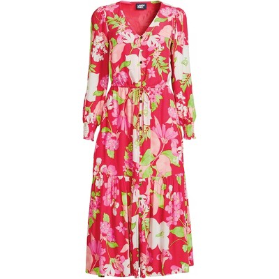 Lands' End Women's Crepe Button Front Long Sleeve Midi Dress