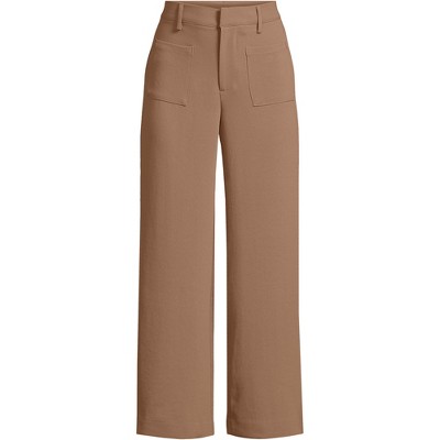 Lands' End Women's Crepe High Rise Pleated Barrel Leg Ankle Pants - 8 - Honey Beige
