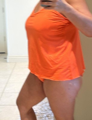 I bought 2 of these tops in pink and turquoise. I like the way they fit on me. Just enough flare around the middle which I need but not too much that it looks matronly. 2 complaints however: they are not chlorine resistant. I wore the turquoise top in a pool and it has faded. I know because I also bought the matching skirt but didn’t wear that in the pool, and I can see the difference. Also, I didn’t like the removable pads -they were lumpy. But I bought replacements and now it looks much better. I would still by this swim top because it fits me well