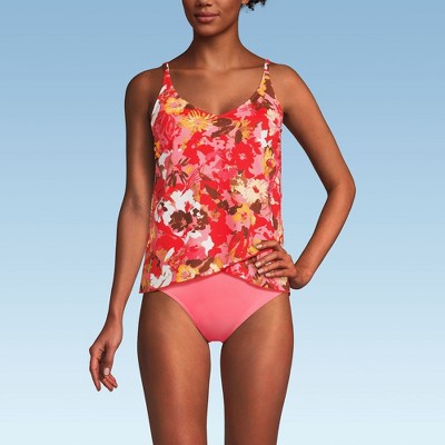 Lands' End Women's D-Cup SlenderSuit U-Wire Bandeau Tankini Top - 10 - Daylily Red Multi Floral