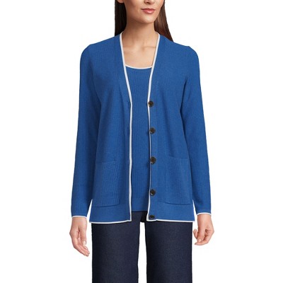 Lands' End Women's Fine Gauge Cotton Cardigan Sweater - Medium - Deep Sea Navy
