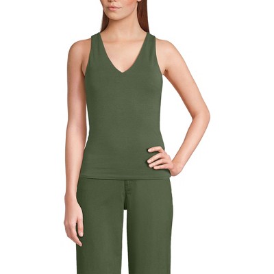 Lands' End Women's Lightweight Jersey Crew Neck Ruffle Sleeve Flowy Top - Medium - Soft Olive Drab