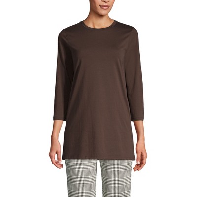 Lands' End Women's Lightweight Jersey Skimming Long Sleeve Scoop Neck T-shirt - Medium - Rich Coffee Thin Stripe