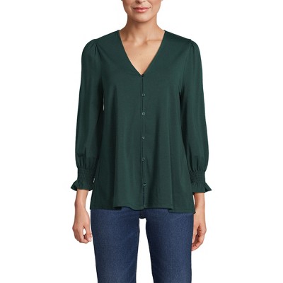 Lands' End Women's Long Sleeve Lightweight Jersey Notch Neck Tunic Top
