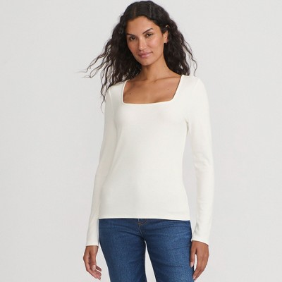 Lands' End Women's Long Sleeve Rib Square Neck Tee