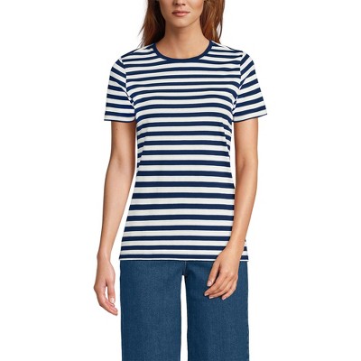 Lands' End Women's Petite Relaxed Supima Cotton Long Sleeve V-Neck T-Shirt - Large - Deep Sea Navy Even Stripe