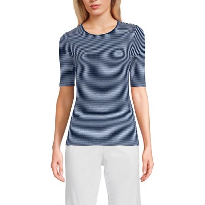 Lands' End Women's Petite Relaxed Supima Cotton V-Neck T-Shirt - X-Large - Radiant Navy