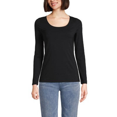 Lands' End Women's Petite Size Supima Cotton Adjustable 3/4 Sleeve Boatneck Tunic - X-Large - Black