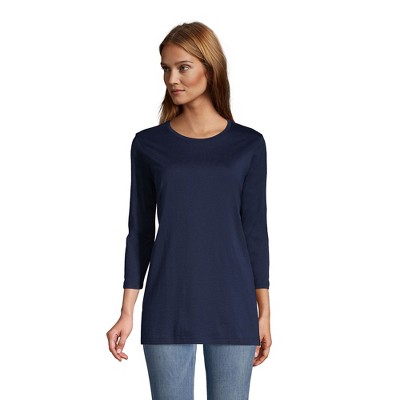 Lands' End Women's Petite 3/4 Sleeve Supima Cotton Polo Shirt - X-Large - Deep Sea Navy