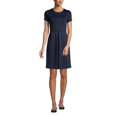 Lands' End Women's Plus Size Cotton Jersey Notch Neck Dress - 3X - Navy/White Breton Stripe