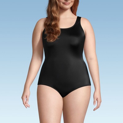 Lands' End Women's Plus Size Long Torso Tugless Low Leg One Piece Swimsuit - 24w - Black