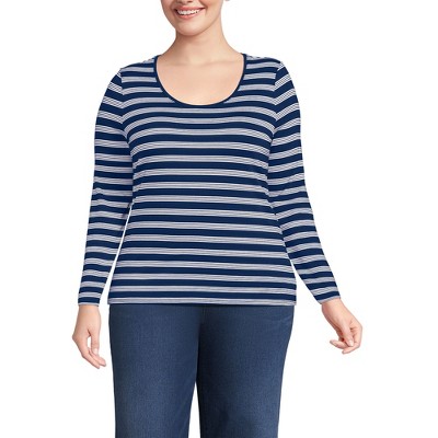 Lands' End Women's Plus Size Lightweight Jersey Skimming Long Sleeve Crew Neck T-shirt