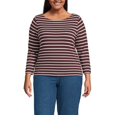Lands' End Women's Plus Size Long Sleeve Lightweight Jersey Notch Neck Tunic Top - 2x - Lush Burgundy Wildflowers