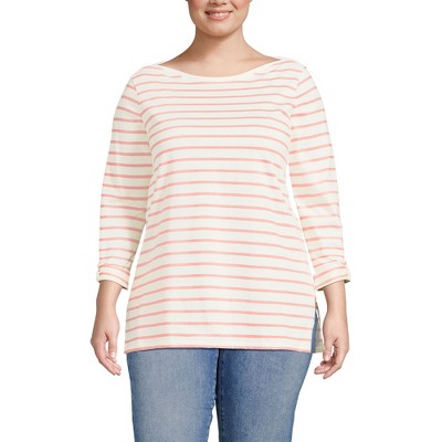 Lands' End Women's Plus Size Long Sleeve Mariner Jersey Crewneck Tee - 2x - Ivory/Champagne Breton Stripes