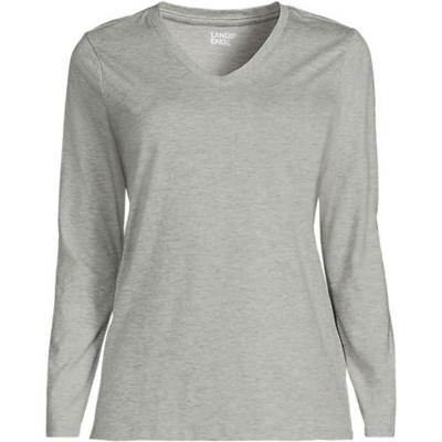 Lands' End Women's Relaxed Supima Cotton Long Sleeve V-Neck T-Shirt