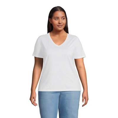Lands' End Women's Plus Size Short Sleeve Lightweight Jersey Gathered Shoulder T-Shirt - 3X - White