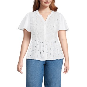 Lands' End Women's Short Sleeve Mixed Media Eyelet Top - 1 of 4